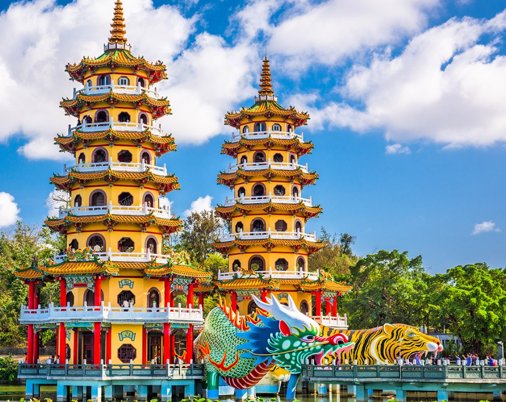 – Tại đây có Tháp Long Hổ: là một trong những ngôi chùa có kiến trúc đẹp nhất ở Đài Loan. Ngôi chùa có hai tòa tháp chính là tháp Long và tháp Hổ, mỗi tháp cao 7 tầng, cửa ra vào được thiết kế độc đáo với một bên là Rồng, một bên là Hổ với ngụ ý vào Rồng ra Hổ tượng trưng cho cát tường, thịnh vượng và may mắn.