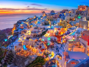 - Thiên đường biển Santorini – Ngắm hoàng hôn đẹp nhất thế giới tại làng Oia, tận hưởng không gian thơ mộng của những ngôi nhà trắng xanh đặc trưng.